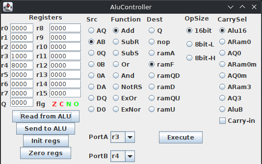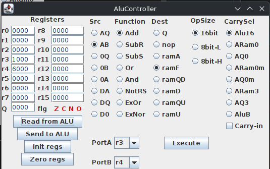 The UI now shows the Q registers and the flags from the board: