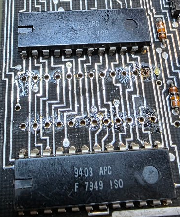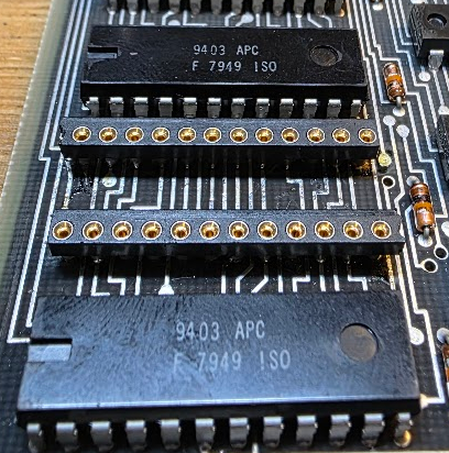 I could not find a 9403 on Ebay (it turned out I made an error searching for it, and apparently the real code is N9403). But there is a replacement: the 74F403 is the same chip. I found two of those on Ebay, in Germany, and ordered those. I removed the dead one and added a handcrafted socket because I had none for the odd form factor of this chip: