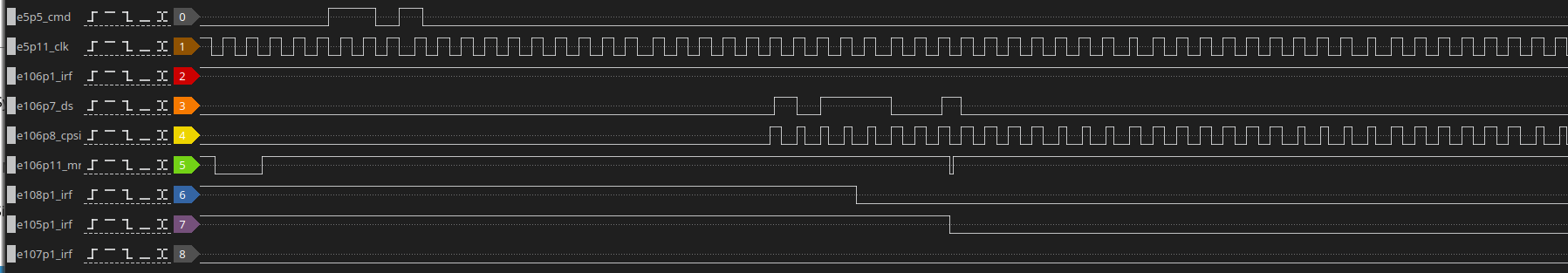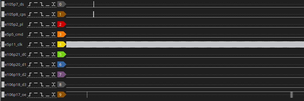 I added the IRF signals of the other 9403's starting at pin 6 (the lsb) and going on to the higher nibbles. We can see the following: