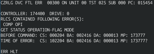 CZRLG DVC FTL ERR 00037 ON UNIT 00 TST 032 SUB 000 PC: 023054