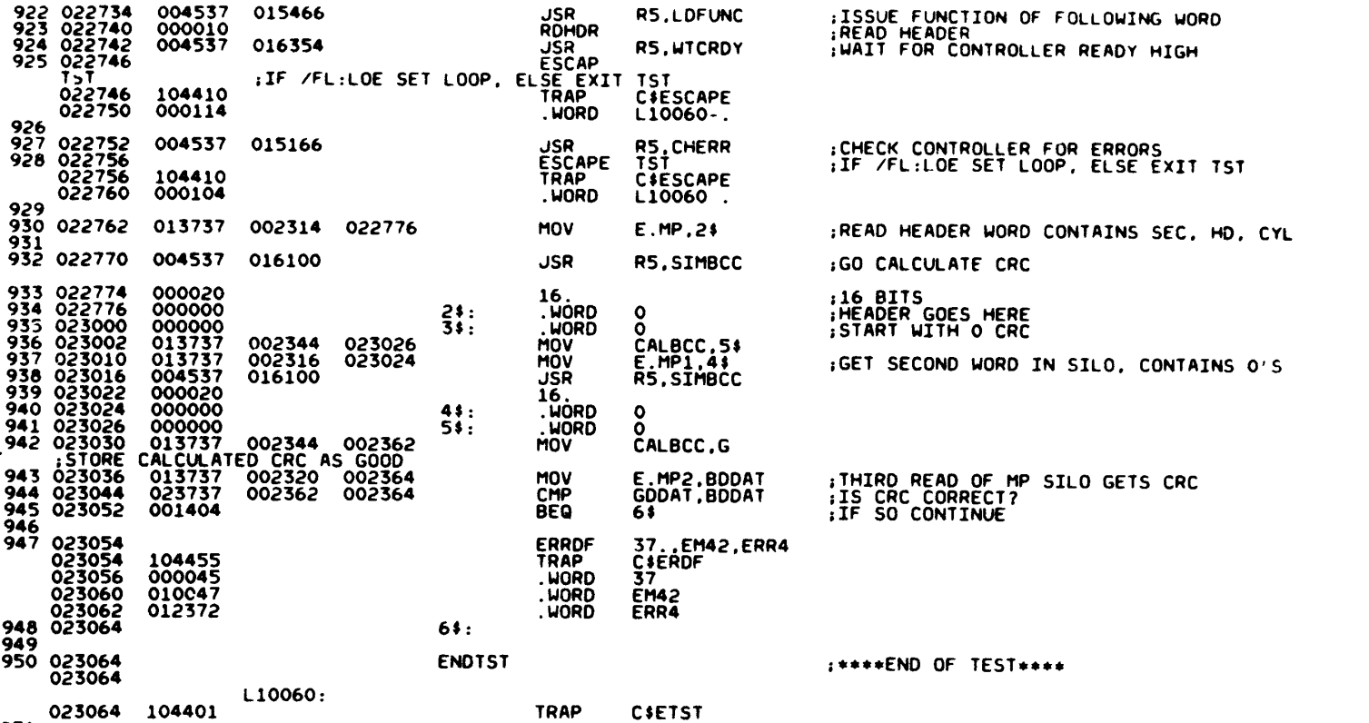 The test executes a READ HEADER command. It then reads the 1st two words from the MP register (the cylinder/track count in the first word and the second word is all zeroes). It calculates a checksum from these two words (in code) and the reads the 3rd word and compares it with the checksum. These should be equal but clearly are not.
